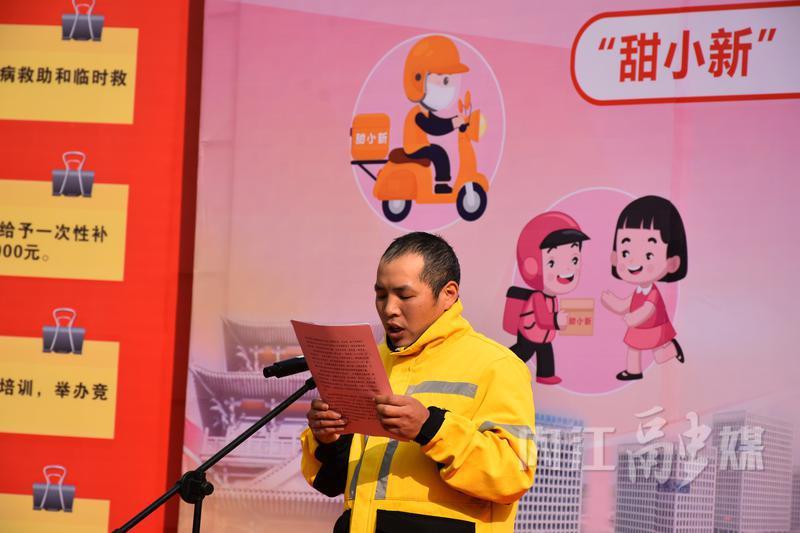 此次活动由内江市委社会工作部指导,东兴区委社会工作部主办,网信、商务、市场监管、交通运输等部门协办。活动现场公布了《内江市东兴区关心关爱新就业群体13条措施》,为新就业群体代表发放了“甜小新” 暖心卡,为友好爱心商家授牌,开展系列政策宣传和志愿服务。