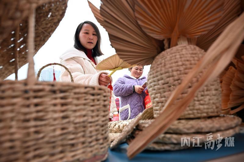 当天,杨家镇以蒲葵为主要元素,举办“蒲葵盛景迎新春”系列活动,传统的蒲扇手工制作吸引不少人驻足观看。这些精美的手工艺品,不仅展现了当地群众心灵手巧,而且体现了蒲葵文化的独特魅力。