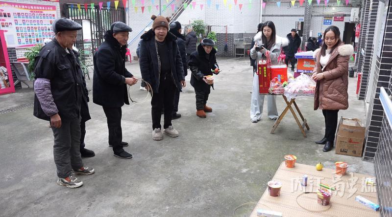 冬日,敬老院里热闹非凡,老人们在工作人员的组织下参加套圈游戏。他们全神贯注,每当成功套中目标,脸上便露出灿烂的笑容,现场欢声笑语不断,氛围温馨而欢乐。