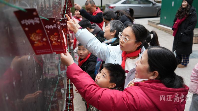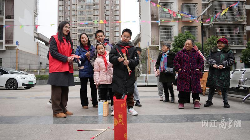 与此同时,在社区院坝里,“我们的节日——元宵节”主题活动也进行得如火如荼。猜灯谜环节,居民们绞尽脑汁,争相猜谜;投壶游戏区更是排起了长队,居民们摩拳擦掌、跃跃欲试,在游戏中一展身手,赢取精美的礼品,现场充满了欢声笑语。