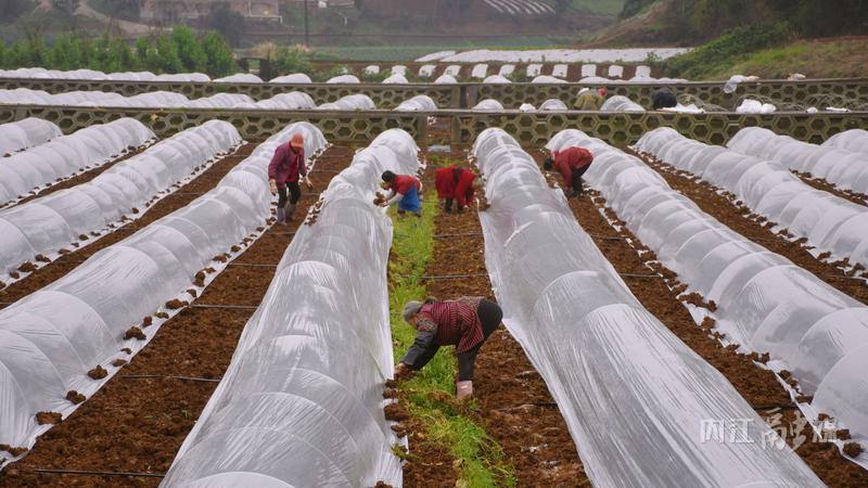 2月24日,走进田家镇正子村的田间地头,村民们三五成群,有的栽苗、有的施肥、有的覆土、有的盖膜,大家分工合作,忙而有序。这片曾撂荒的土地,如今焕发出勃勃生机。