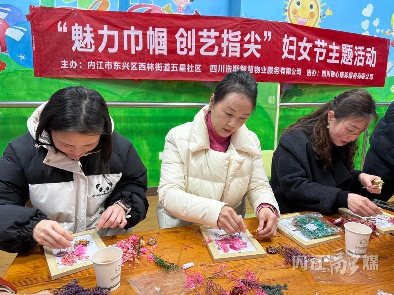 3月7日上午,东兴区西林街道五星社区举办了一场主题为“魅力巾帼 创艺指尖”的妇女节手工DIY活动,吸引众多女性居民踊跃参与。