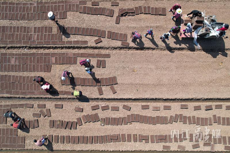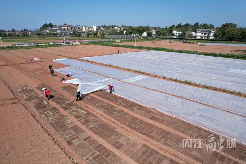 3月24日,在位于东兴区田家镇的内江长江现代农业园区,村民们进行水稻集中育秧。