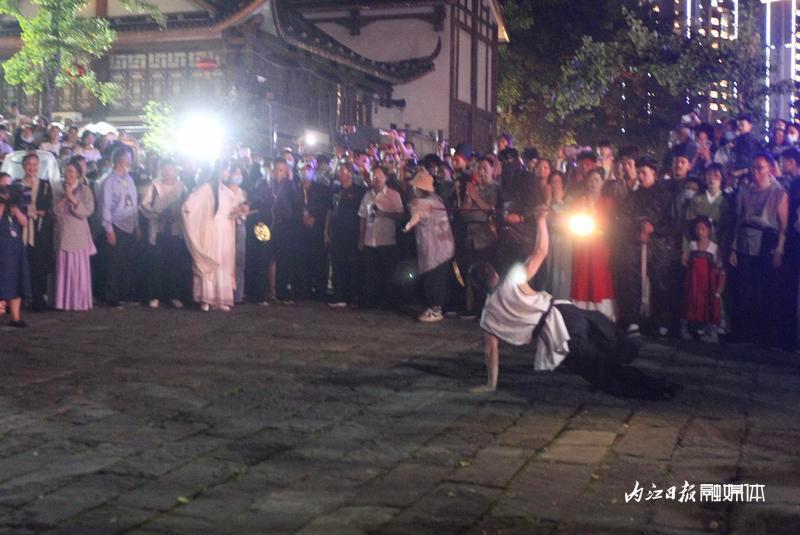 近200名演员大部分来自隆昌,演出将隆昌人文历史浓缩于400多米的牌坊街。“不仅拉动夜间经济,更是将牌坊街打造成了网红景点,今后将常态化演出。”喻钢说。