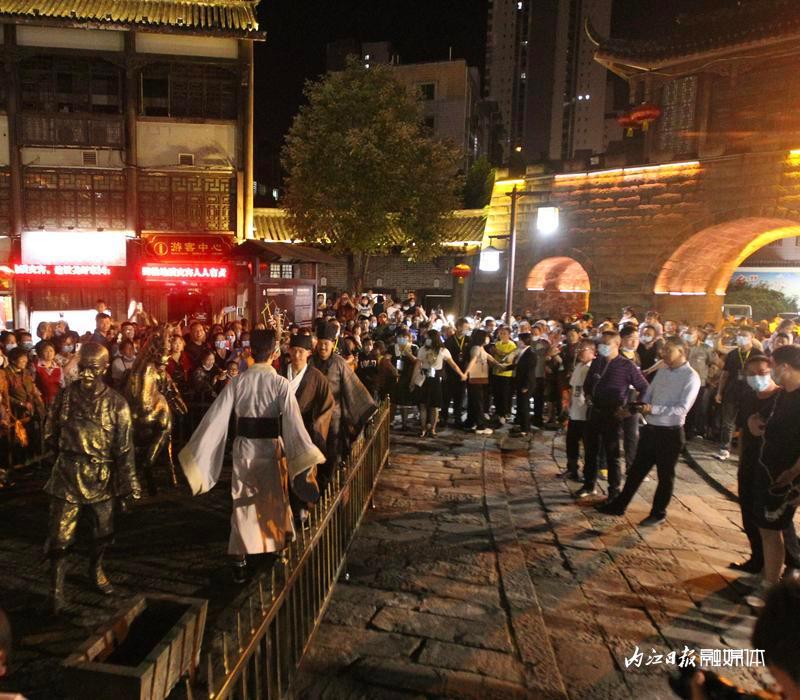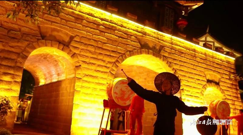 “兴隆昌盛、福寿康宁”“今日开市、喜迎贵客”……伴随“咚咚咚”的击鼓声,5月20日晚8时,在隆昌南关石牌坊景区,一场盛大时空穿越情景剧,拉开大幕。