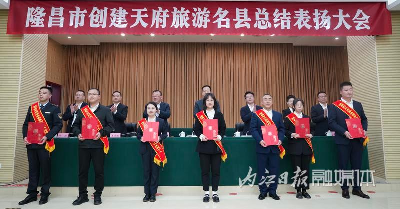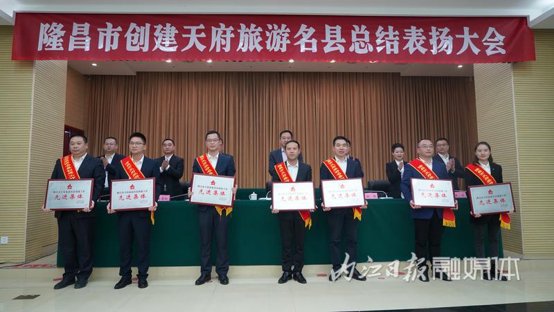 会议观看隆昌市天府旅游名县创建纪实片、宣读表扬文件;为受表扬的集体及个人代表颁奖;受表扬的先进集体、先进个人代表作发言。