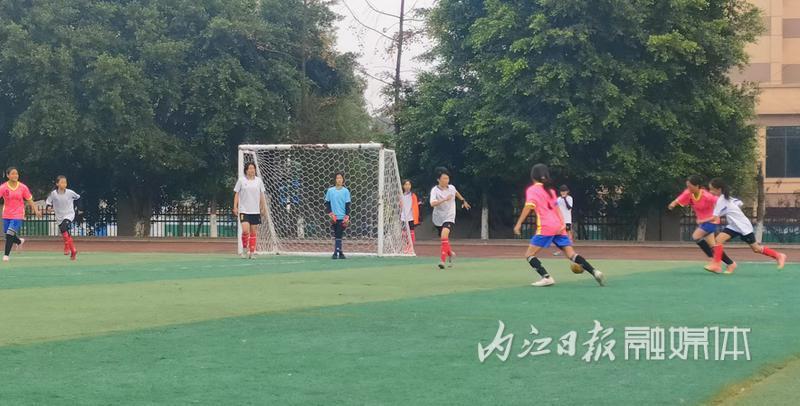 每周体育课,安排一节足球教学课。体育教师石勇担任教练,组建起校足球队和班足球队,学习足球理论、训练基本功;每天一小时课外活动、课后延时服务“玩”足球;与周边学校开展足球竞技交流活动等。目前,学校每天坚持足球训练的学生达130余人。2021年,学校被评定为“内江市青少年足球训练中心(基地)”。