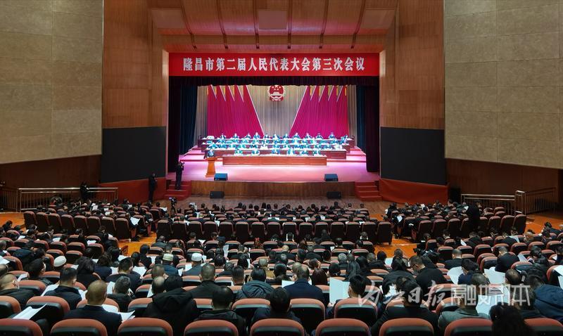 上午9点,大会执行主席林双全宣布隆昌市第二届人民代表大会第三次会议开幕。全体起立,奏唱中华人民共和国国歌。