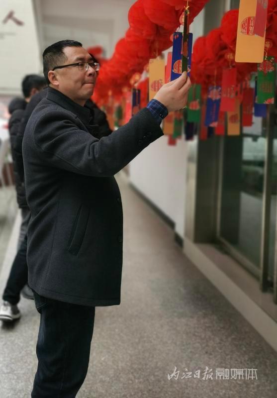 “什么字全世界通用?”“世界上最小的岛是什么?”“一个小姑娘,生在水中央,身穿粉红衫,坐在绿船上。(猜一植物)”……猜灯谜,既能开发智力、考记忆力,又能提高大家的脑筋急转弯能力。干部职工纷纷猜灯谜,有的与人“窃窃私语”,有的比划沉思,谜语条被猜谜者取下前往兑奖区核对谜底,现场洋溢着欢乐祥和的气氛。