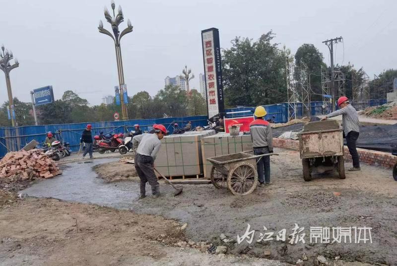 4月即将竣工的西区农贸市场项目,投资1.8亿元。目前已进入室外附属设施装饰阶段。