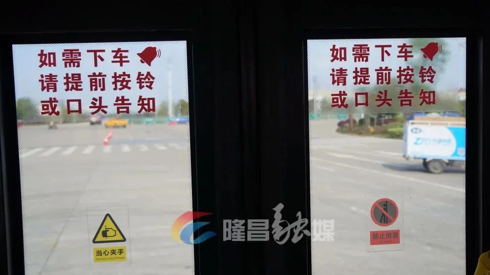 后车门的玻璃上还张贴了“如需下车,请提前按铃,或口头告知”的提示文字。
