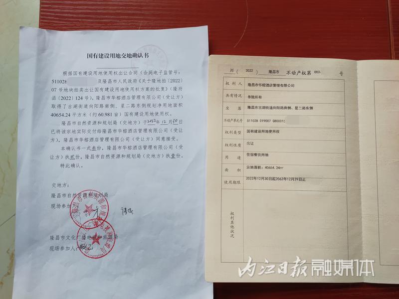 不久前,隆昌市华榕酒店管理有限公司在隆昌市不动产登记中心先后取得了《国有建设用地交地确认书》《不动产权证书》。“两证”同发,大大降低了该企业的资金成本和时间成本,这种“交地即交证”的服务新模式随即在隆昌市全面铺开。