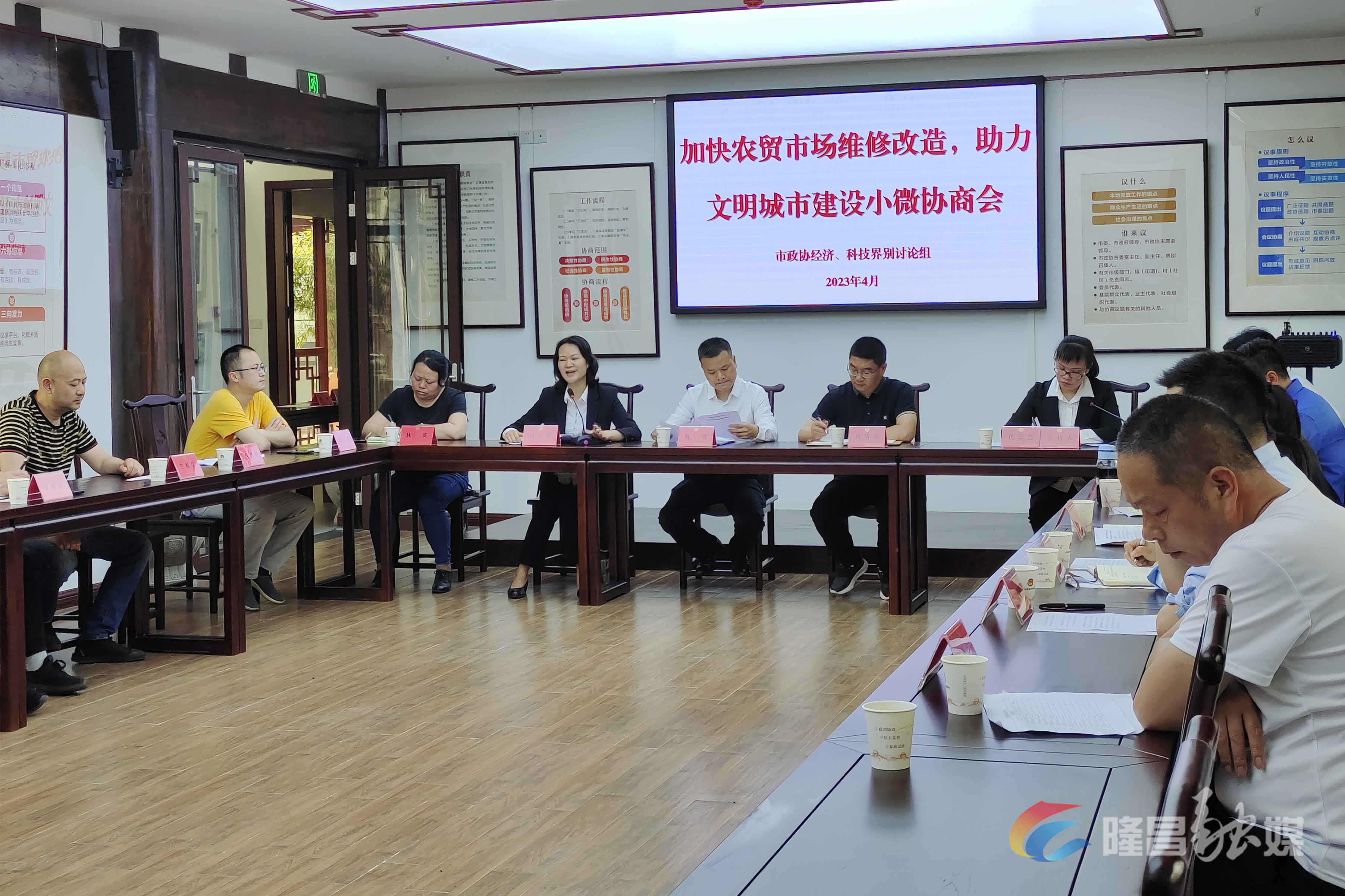 4月18日,隆昌市政协经济、科技界别召开“加快农贸市场维修改造,助力文明城市建设”小微协商会,隆昌市政协副主席刘勇及经济、科技界别的政协委员、市级相关部门负责人、群众代表参加。
