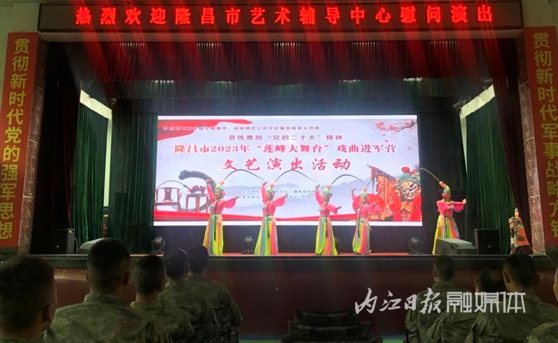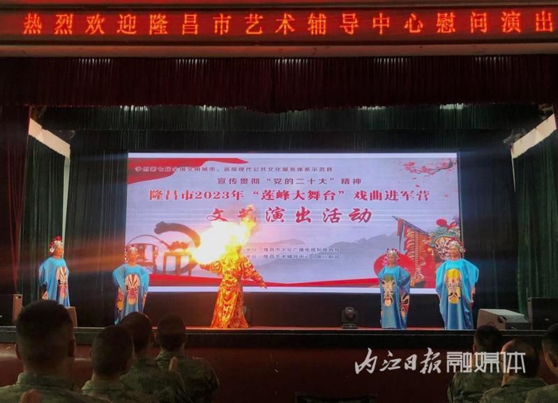 在“五一”节到来之际,4月28日下午,由隆昌市双拥办牵头,市文广旅局主办、市艺术辅导中心承办的“莲峰大舞台”川剧文艺慰问演出走进驻隆部队,将精彩节目送给最可爱的人。