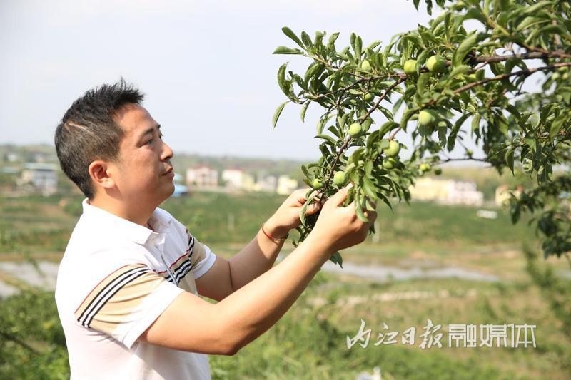 记者在村里转了许久,终于见到大家口中的“飞哥”——隆昌皓天水果种植农民专业合作社理事长徐飞。他身穿白色翻领短袖,脚穿皮鞋,精神爽朗,满脸笑意。