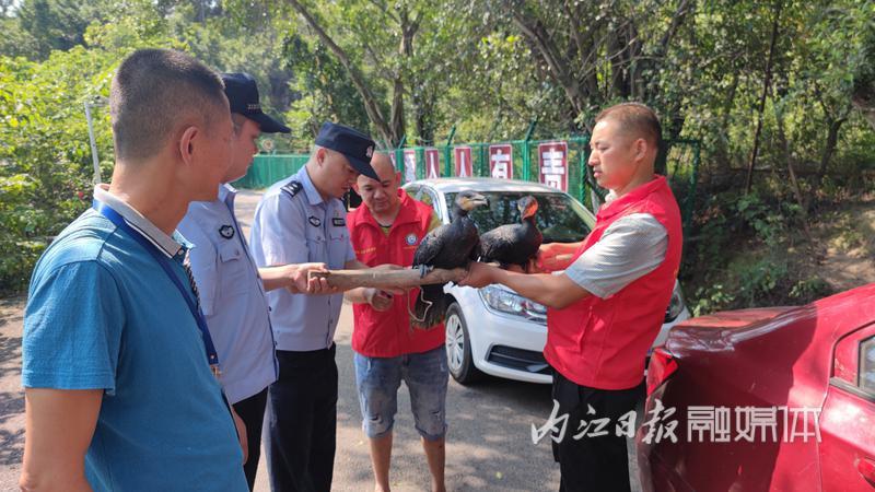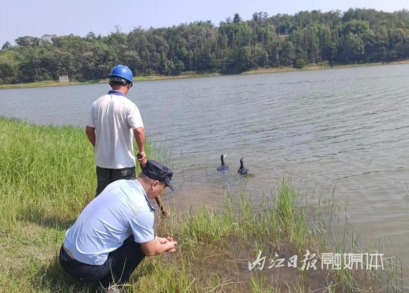 6月27日,隆昌市公安局联合市自规局、市爱鸟养鸟协会,在古宇湖放归两只鸬鹚。