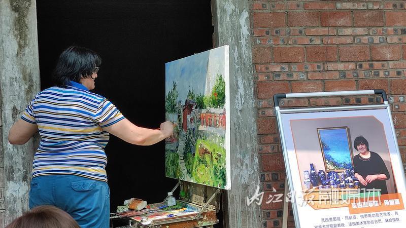 内江市著名画家陈尔云专程赶到隆昌绘画现场,观赏异国艺术家创作的精彩油画;隆昌美协主席吴勇和美协会员,全程陪同俄罗斯艺术家观摩学习交流。