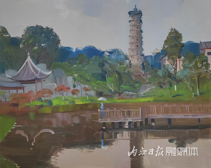 连日来,艺术家们头顶烈日,行走于南关石牌坊、云峰关白塔森林公园、天运楼、万隆桥、古宇湖、白庙子湿地公园等独特人文风景区,打开画架,选定角度挥动画笔,沉浸于创作交流,一幅幅油画作品在汗流浃背中诞生。