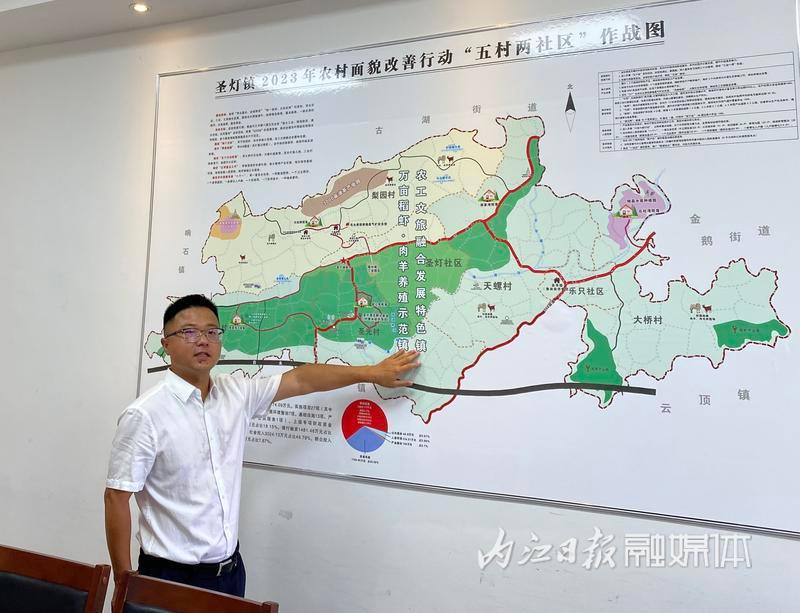 “围绕农村面貌改善工作,圣灯镇坚持党建引领,紧扣‘万亩稻虾•肉羊养殖示范镇、农工文旅融合发展特色镇’目标,创新探索农村面貌改善‘微网格’模式,形成‘22558’总体思路,系统推动农村面貌改善工作跃上新台阶。”站在农村面貌改善行动“五村两社区”的作战图前,镇党委书记余治佑语气坚定。