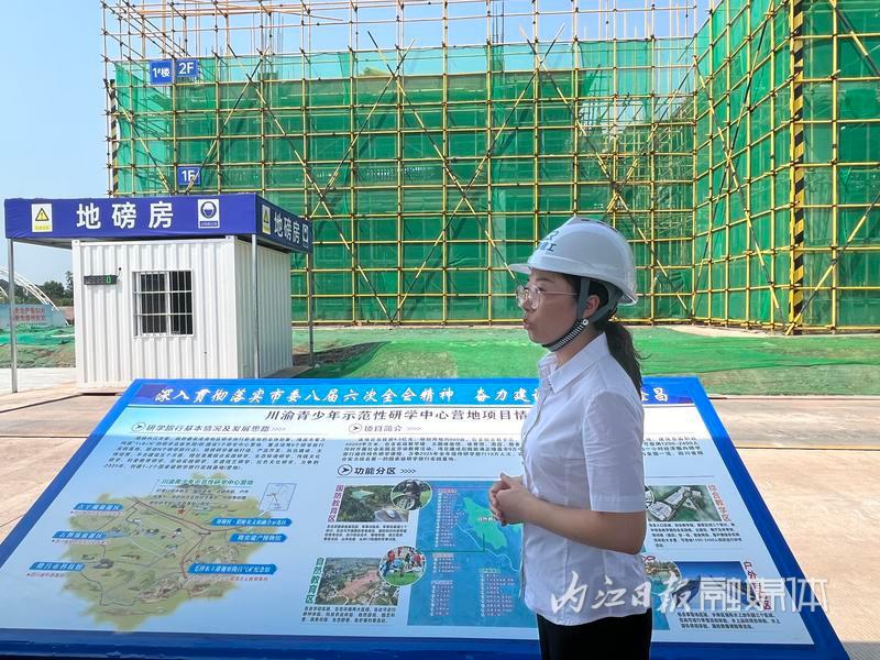 媒体代表团首先来到川渝青少年示范性研学中心营地。这个营地建筑总面积近40000平方米,包含实践教学楼、主题体验馆、体育馆、酒店、宿舍及餐厅。多元化的主题活动内容丰富,可容纳1200—2400人同时参加社会实践及劳动教育活动。项目建成后,既能满足隆昌市9万名中小学生实施素质教育的需要,又能为周边“一小时经济圈”内研学旅行提供特色研学课程。