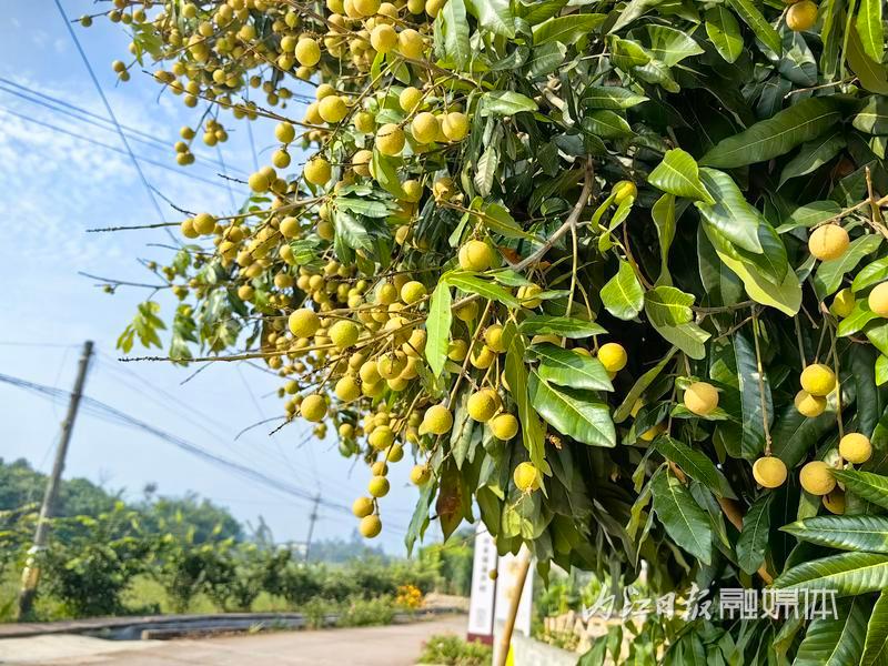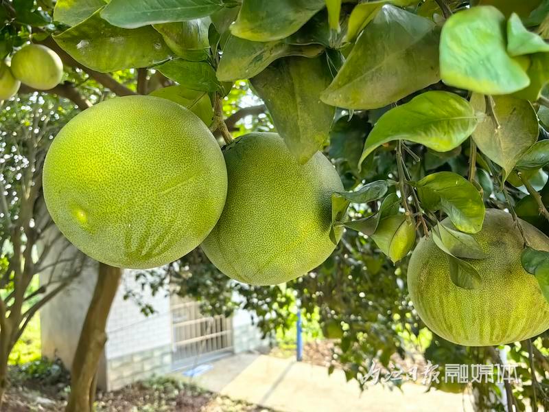 村民叶顶富家的果园里,即将成熟的龙眼挂满枝头,柚子树上挂着一个个绿油油、沉甸甸的柚子。他的妻子陈守英手拿蒲扇和邻居们在柚子树下聊天、歇凉,孩子们追逐嬉戏,欢笑声此起彼伏。