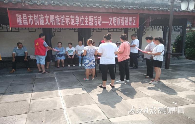 近日,隆昌市组织志愿者在石牌坊古镇景区开展以“文明旅游进景区”为主题的文明旅游宣传活动。