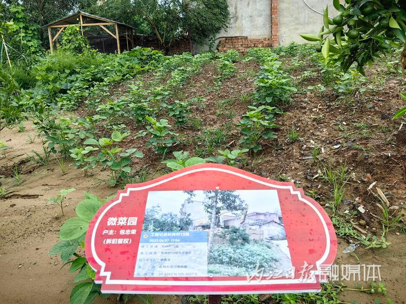 “果园里以前堆的是烂砖旧瓦,像个垃圾堆。接下来,我准备把果园旁边的撂荒地利用起来,弄个微菜园种些菜。”村民叶顶富在自家果园里,将一块块红砖斜立起来,分隔果园与菜园。