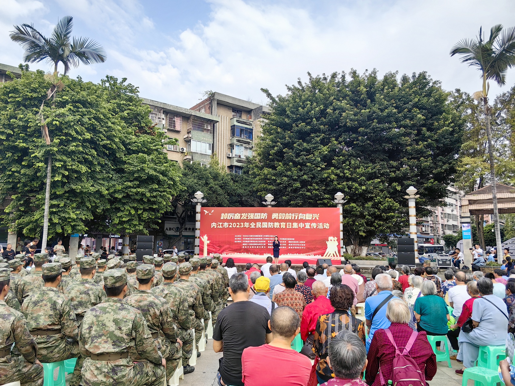 9月16日是我国第23个全民国防教育日。当日上午,隆昌市东门广场热闹非凡。“踔厉奋发强国防 勇毅前行向复兴”——内江市2023年全民国防教育日集中宣传活动在此举行。