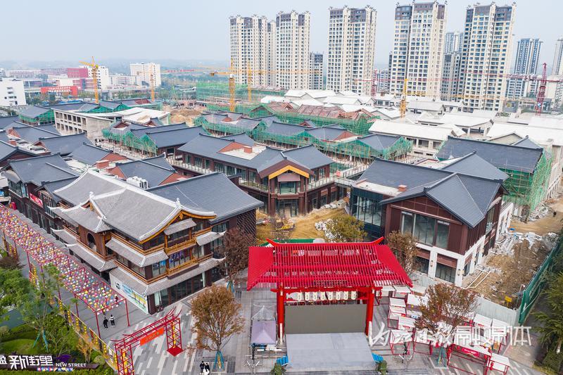 11月30日,隆昌市首条特色文旅商业街“新街里”项目施工现场,塔吊林立,头戴安全帽的工人们正在紧张施工,现场一派忙碌景象。