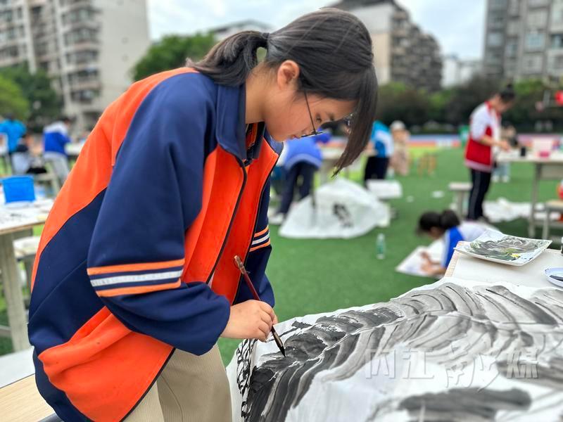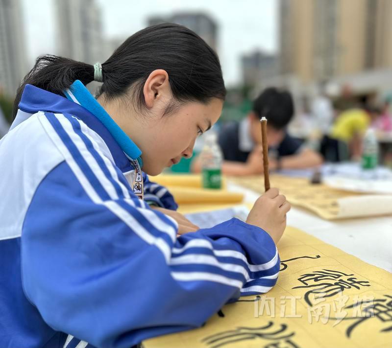 铺开宣纸,娴熟地将毛笔蘸满墨汁,凝神静气,稍作停顿后落笔书写。或笔力遒劲,或龙飞凤舞,只见笔尖如舞者欢快地跳跃,书法的灵动之美跃然纸上。这是5月16日,“文化传承·强国有我”第三届内江市“大千画派”青少年书画传习大赛(隆昌赛区)比赛现场。