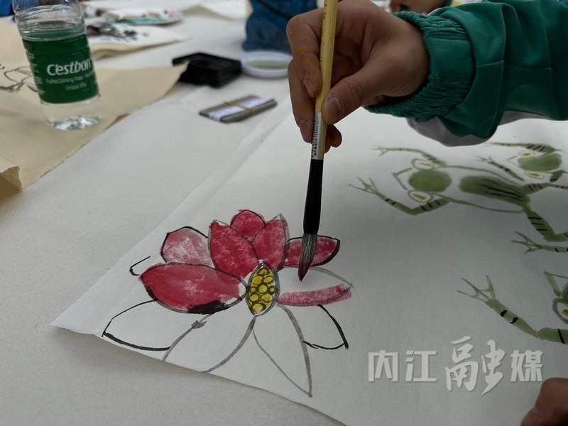 现场,书法组的选手有的端坐,有的站立,在宣纸上落下稳重的一点一撇一捺;国画组的选手沉思片刻,在心里打好底稿后,动手调色作画。