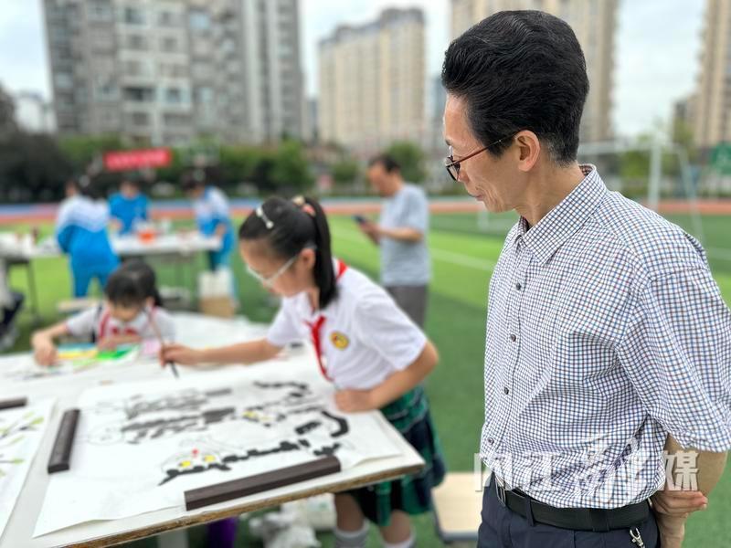 大南街小学四年级学生潘钰彤练习书法4年了,她认真观摩大哥哥大姐姐的书法作品后表示:“写得太好了,背后一定很努力。我会更加努力,一直坚持下去,希望能和他们一样写得漂亮。”