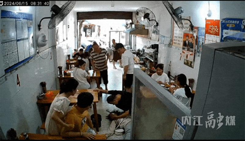 向生杰是隆昌市公安局黄家派出所的一名辅警。6月15日早晨,值完夜班的他前往黄家镇场镇一家早餐店吃早饭。 “我刚坐下不久,一个18岁左右的女子走进餐馆,她刚走到店内靠里面的柜子旁,突然晕倒在地。”向生杰说,看到女子晕倒后,他立马起身上前蹲在地上查看女子情况,并现场展开急救。