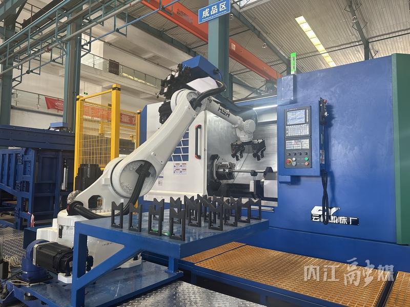 在隆昌山川机械有限责任公司充液成型生产线,抓取料机器人协同人工,80至90秒便生产出了一个汽车副车架零件。而还未进行自动化改造的同一条生产线,则需要100秒左右。“效率提升,这是‘智改数转’一大重要成效。”山川机械工艺制造部副部长胡凡春说。