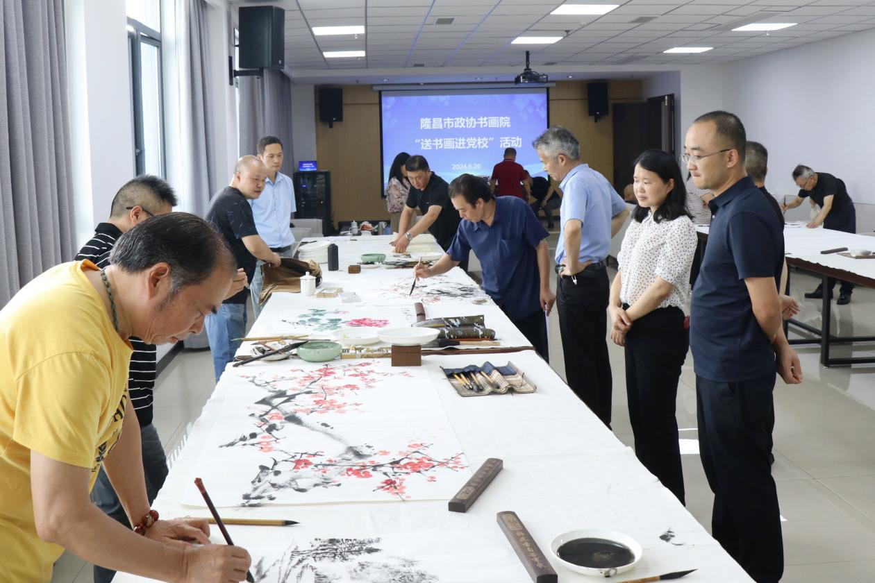 举办一次主题笔会。以“翰墨颂党恩•书香润人心”为主题,邀请隆昌市政协书画院书画家到党校创作书画作品。13位书画家挥毫泼墨,现场创作“以德养廉”“激浊扬清”等书画作品。主题笔会以书画为媒,书写爱党爱国华章,重温中华传统文化,喜迎党的生日,提升党性修养,推动书香校园建设。