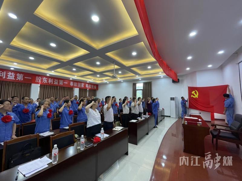 重温誓词,坚定初心使命。在隆桥化工集团公司党员活动室,党委书记朱世红带领所有党员干部举起右手、握紧拳头,面向鲜红的党旗,重温入党誓词。