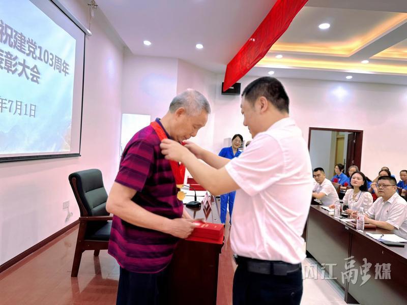 表扬先进,激励担当作为。隆昌市经科局党组书记徐世伟为隆桥化工老党员颁发“光荣在党50年”纪念章。五十载峥嵘岁月,半世纪初心不渝,沉甸甸的纪念章,印刻着老一辈共产党员的青春和奉献,也激励着青年党员永葆初心使命,为党的事业奋斗终身。经科局领导班子成员分别为获奖的4个先进党支部和28名优秀共产党员颁发证书,鼓励企业党员干部向获奖同志学习,发挥模范带头作用,敢于担当作为。