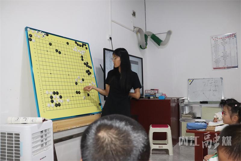 7月6日,隆昌市组织学生在“云枫”围棋开启了围棋假期作业第一课。课堂上,隆昌围棋高手郭勇从“守角”布局讲起,讲解多种应对方式可以安全守角。“小飞”“大飞”围角,三三过角,都是比较实用的下棋方法。