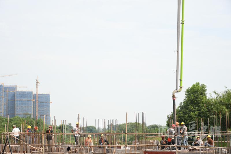 7月31日,在位于向阳路的隆昌市污水综合治理项目设计施工总承包城区管网工程加压泵站施工现场,工人们加紧开展浇筑工作。