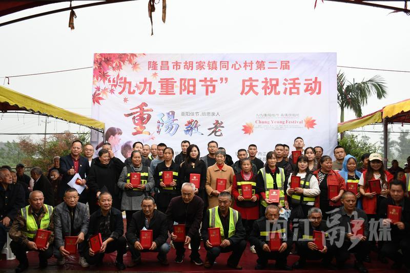 “老辈子,慢点,不着急。”“你们几个坐这一桌,好好摆龙门阵。”8点半左右,同心村19个组的老人们陆续来参加同心村第二届“九九重阳节”庆祝活动,村党委书记、村委会主任李代富热情地招呼大家。