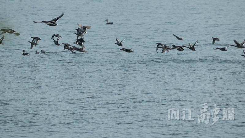 湖光山色间,斑嘴鸭、绿翅鸭、鸬鹚等候鸟,时而戏水翻飞,时而翩翩起舞,时而嬉戏觅食,美丽和谐的生态画卷令人赏心悦目。