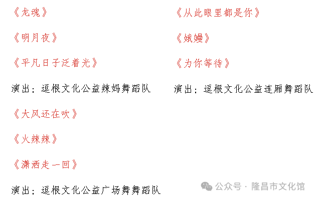 三、隆昌市文化馆根据报名情况,对使用顺序进行安排。因场地、天气等因素不能使用时,对使用团队进行调整。