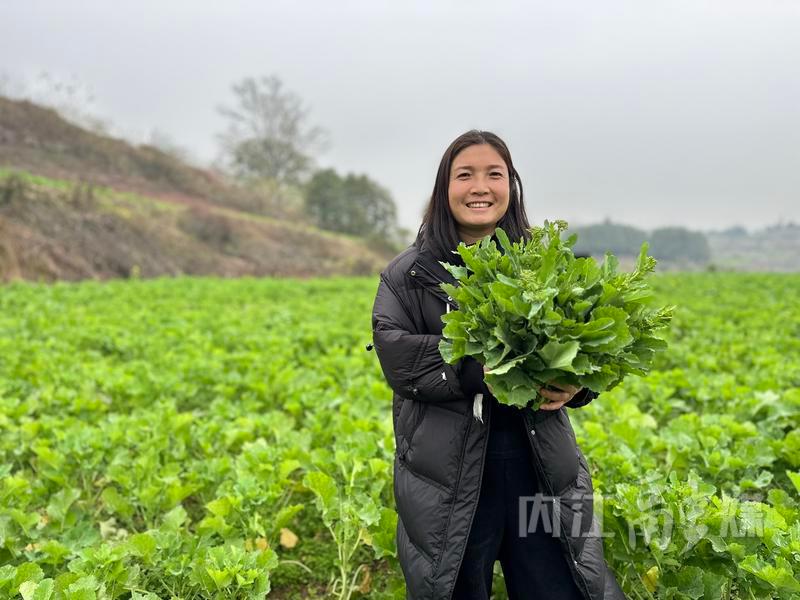 丁晓慧走进绿意盎然的油菜地,掐下一段嫩绿的油菜薹放入口中。“又嫩又甜,你尝尝。”她热情地邀请记者品尝。