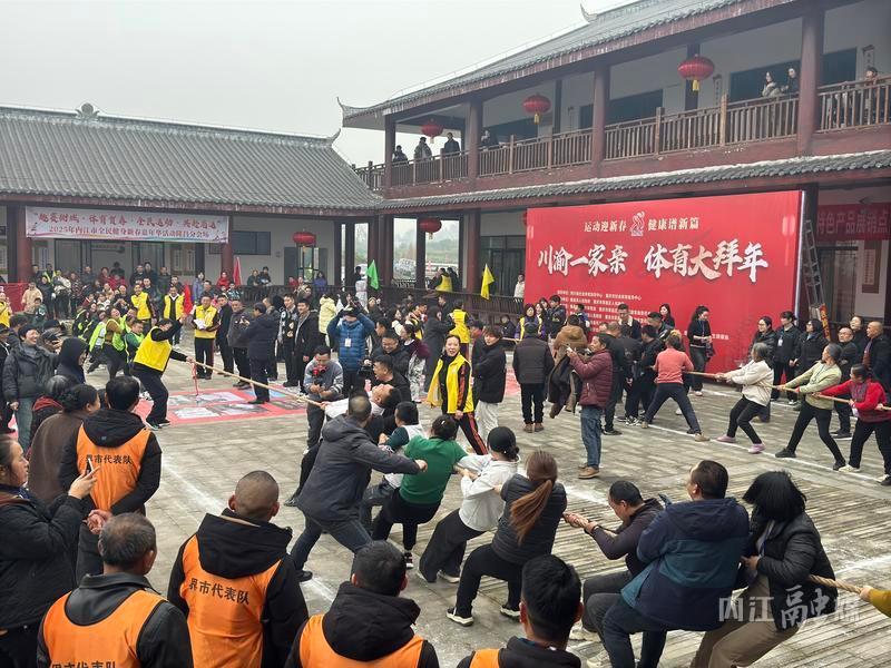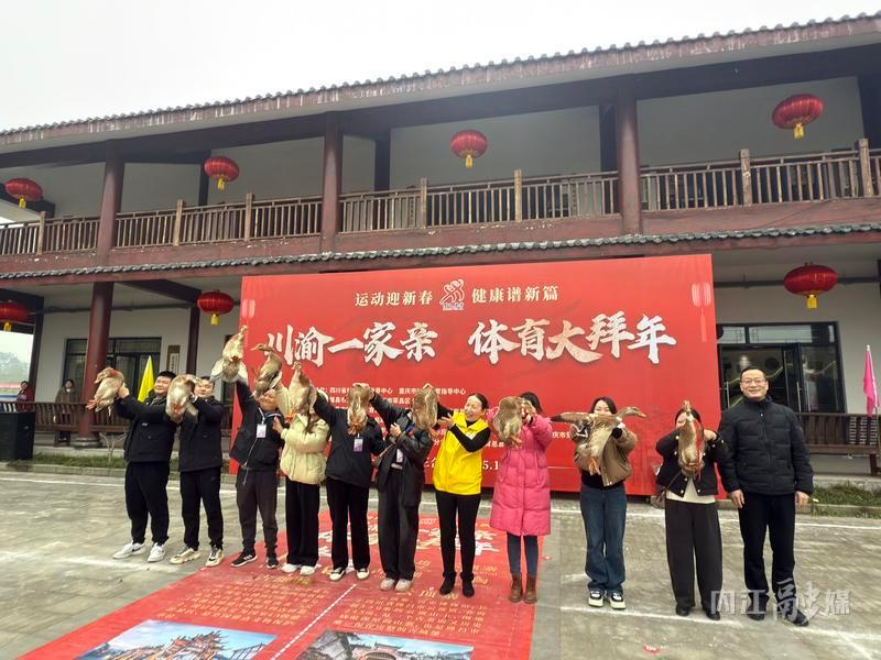 1月22日,隆昌市石燕桥镇三合村的双昌园区综合服务中心热闹非凡。来自隆昌和荣昌的群众怀着对新年的美好憧憬,共赴一场别开生面的“川渝一家亲·体育大拜年”活动。