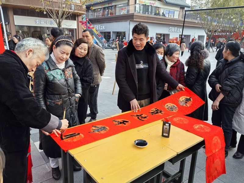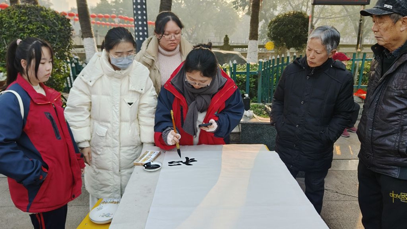 学校经过前期的精心筹备,于当天上午组织书法才艺出众的师生齐聚隆昌东门广场。师生们满怀新年美好憧憬,传递心中美好祝福,挥毫泼墨、笔走龙蛇。运笔之间,他们挥洒自如,尽显磅礴大气之壮美;他们静心沉潜,彰显心手相应的默契。那一副副春联、一个个“福”字,跃然纸上。作品风格多样,寓意满满,让众多市民驻足观赏并沉醉于这份独特的文化韵味与风情之中。师生们在赠送春联和“福”字的同时,还将现场精心创作的绘画、素描、色彩、国画等作品赠送给市民,表达学校全体师生对隆昌全市人民的新春祝愿。在接收到承载着新春祈愿的珍贵礼物时,市民们脸上无不绽放出笑容,并以诚挚的话语表达对师生深深的感激之情。他们动情地表示,这些福字不仅仅是迎接新春佳节的美好祝愿,更是学校这个温馨大家庭所传递出的深切关怀与无限温暖的生动写照,让人倍感温馨与鼓舞。