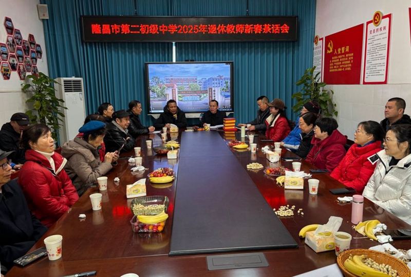 为表达对退休教师的敬意与关怀,喜迎2025新春佳节的到来,近日,隆昌市第二初级中学举行了退休教师荣休仪式暨2025年新春茶话会。学校退休教师及全体行政人员参加。