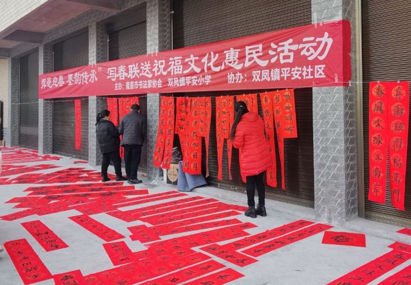 为弘扬中华优秀传统文化,营造欢乐、喜庆、祥和的节日氛围,1月20日,隆昌市双凤镇平安小学与隆昌市书法家协会举办了一场温馨而热烈的现场书写、赠送春联送“福”活动。
