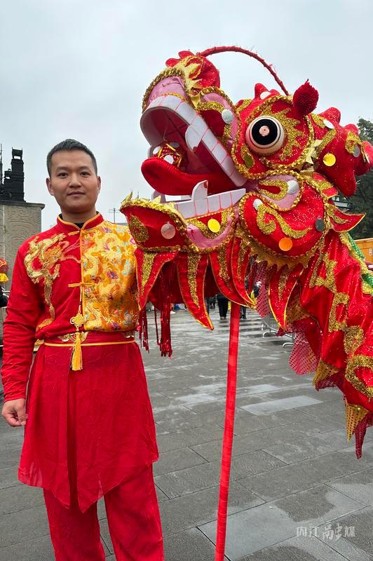 连续两年参加舞龙表演的吕勇是一位30岁出头的年轻人,因被隆昌舞龙的传统和磅礴气势深深吸引,他加入了舞龙队伍,成为了其中一员。他表示,将向身边资深的舞龙队学习、交流、切磋,在传统舞龙的基础上创新动作,做好传承发扬。