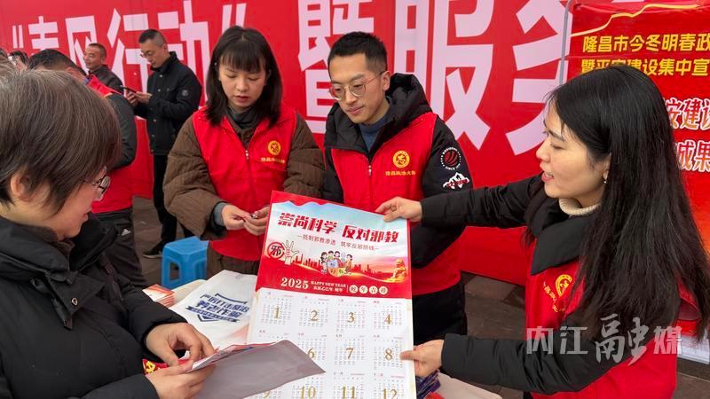 2月5日,隆昌市委政法委、市法学会、市反邪教协会以隆昌市正月初八舞龙文艺展演为契机,在莲峰公园开展主题为“人人参与平安建设,家家共享平安成果”的政法暨平安建设集中宣传活动。