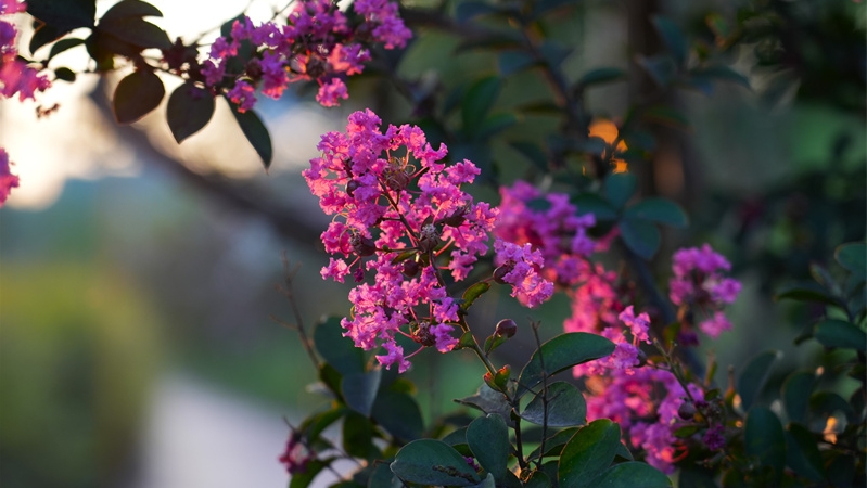 美得像幅画!内江七家滩湿地公园紫薇盛放